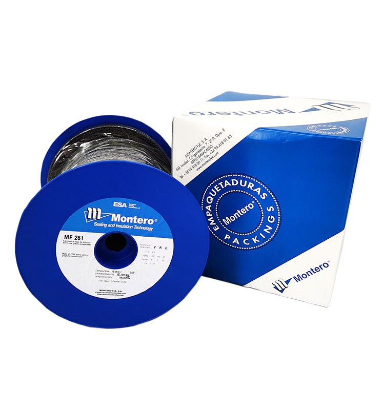 MF-261由含石墨的四氟線(xiàn)經(jīng)對角編織而成。石墨成份使盤(pán)根非常柔韌、易安裝及散熱快﹔四氟成份使其極抗化學(xué)腐蝕﹐幾乎適用于除強氧化物質(zhì)(如硝酸、硝基鹽酸及強堿)之外的任何介質(zhì)。此盤(pán)根不易硬化,且具有自潤滑性能﹐使其被廣泛應用于各種旋轉設備的填料函及閥門(mén)。